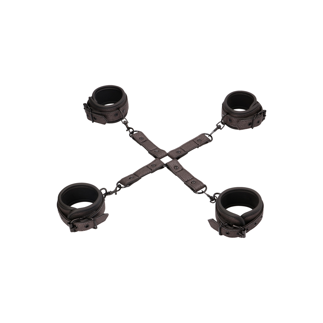 Ga op alle vier met deze hoogwaardige hogtie! Dit apparaat is gemaakt van gebonden leder, neopreen, pvc en aluminium en maakt je volkomen immobiel! Je BDSM spel zal nooit meer hetzelfde zijn!
