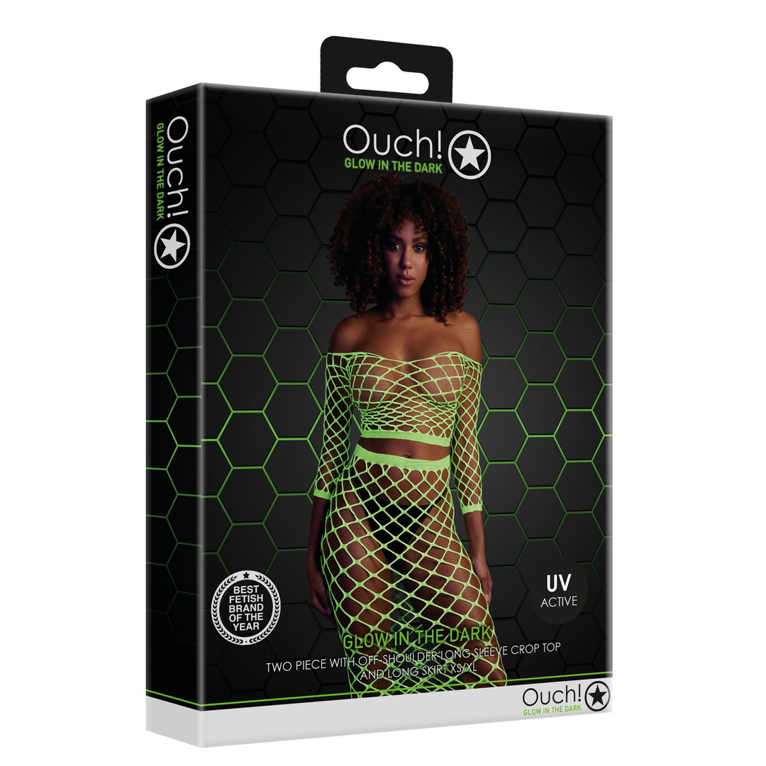 Dramatic Elegance: The Neon Long Sleeve Crop Top and Long Skirt ensemble exudes dramatic elegance with an off-shoulder long sleeve crop top and a gracefully flowing long skirt, making it a stunning choice for special occasions.UV Activated Allure: Designed with UV-activated materials, this ensemble adds a touch of allure and mystery as it lights up the night, ensuring you stand out and captivate attention.Comfortable Stretch: Made with comfortable, easy-to-fit, stretchy materials, this ensemble provides a perfect fit, allowing you to dance the night away in style. Choose from neon pink or neon green for a vibrant and unforgettable look./