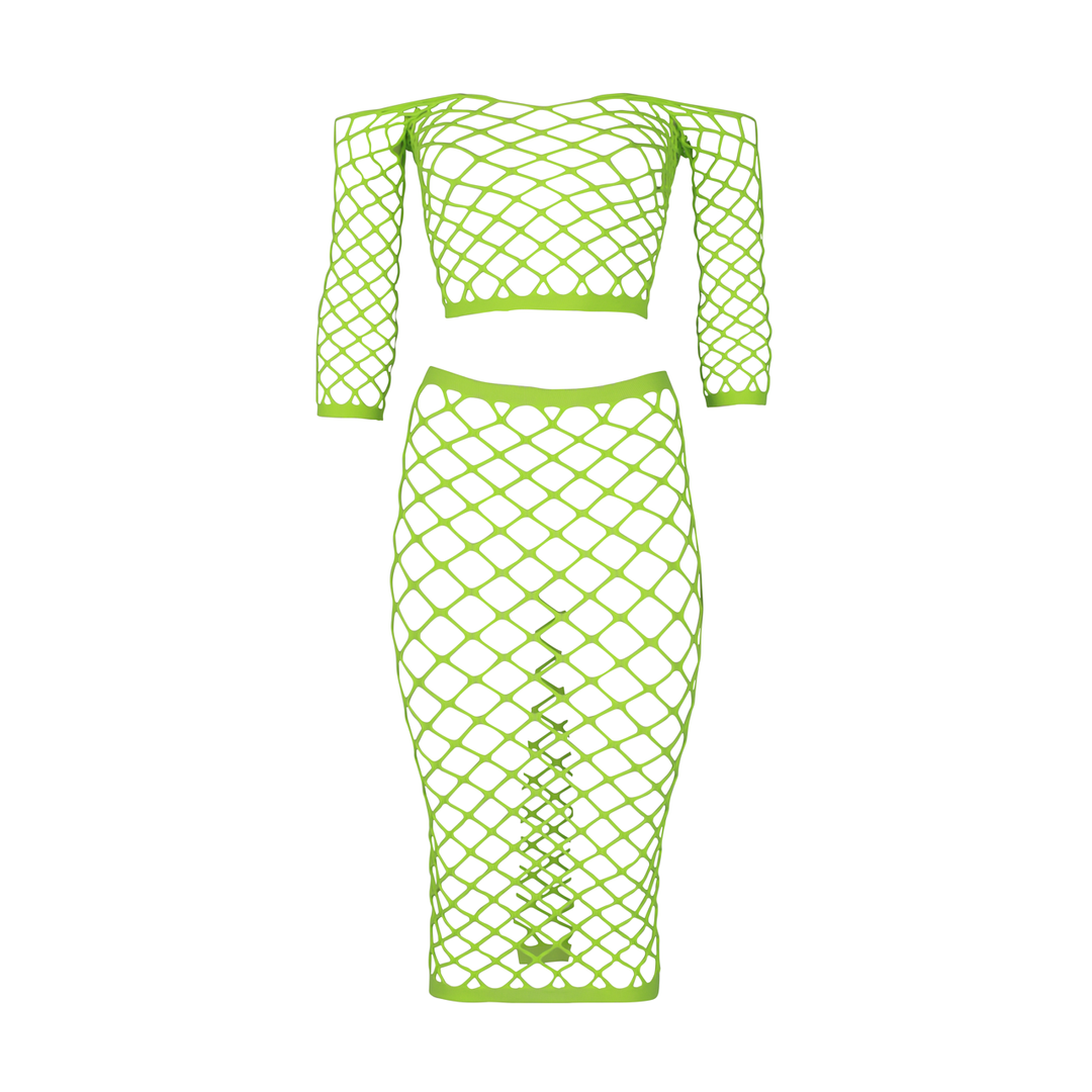 Langsleeve Crop Top en Lange Rok – One Size – Neon Groen