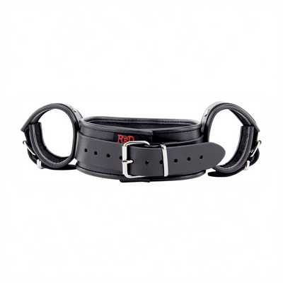 Neck / Hand restraint cuffs in leather. High-quality leather, Vegetable-tanned. Made in Europe.