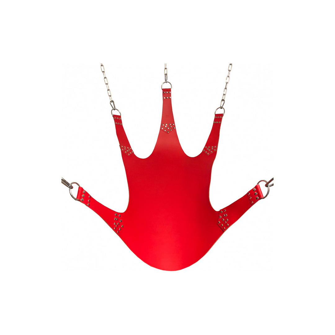 Deze sling is een model dat perfect zal passen in uw speelkamer of SM Dungeon. Hij is gemaakt van leer met 5 stalen ophangpunten. Afmetingen: 113 x 122 cm – Lederen dikte 3mm