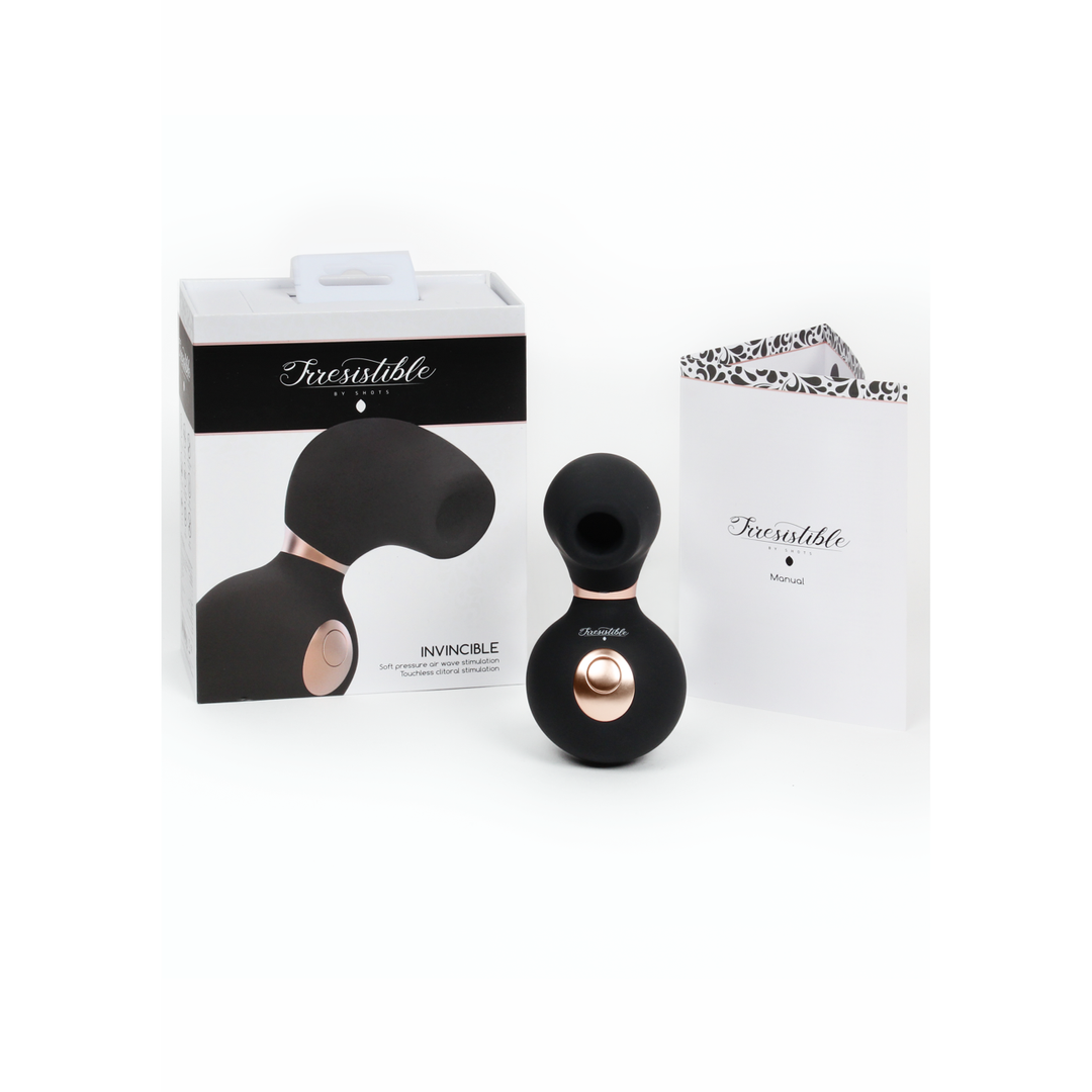 De Invincible heeft een superkrachtige new generation F1 motor met 10 snelheden. Deze voegt zich perfect naar de vorm van elke vrouw om het meest intense orgasme te creëren! De Invincible heeft een oplaadbare batterij met een magnetische USB-aansluiting en wordt geleverd inclusief oplader. Als hij volledig is opgeladen, gaat hij 60 min. mee. Het zachte, soepele en waterbestendige ontwerp is gemaakt van medische silicone, waardoor de Invincible makkelijk is schoon te maken.Touchless Airwave-technologieDe Irresistible Collection is niet zomaar een collectie seksspeeltjes. Ze zijn de beste seksspeeltjes op de markt voor vrouwen. Dat is een feit! Wat de Irresistible Collection zo bijzonder maakt is dat onze clitorisvibrator vervaardigd is uit hoogwaardige siliconen en dat hij uitgerust is met onze Touchless Airwave-technologie.De Irresistible Collection is de ideale combinatie van geavanceerde technologie, hoge kwaliteit, esthetiek en een ergonomisch ontwerp. De technologie werkt door de clitoris zachtjes en onrechtstreeks te stimuleren met elf verschillende intensiteitsniveaus van superzacht tot krachtig. Dit mooi ontworpen speeltje omringt uw clitoris zonder hem aan te raken en stimuleert hem via de zachte druk van luchtgolven, waardoor er een unieke weefselpenetrerende vibratie teweeggebracht wordt die niet behaald kan worden zonder het gebruik van deze technologie. (Geluidsgolven kunnen door verschillende media reizen, waaronder vloeistoffen en vaste stoffen. De gemiddelde golfsnelheid voor geluid in lichaamsweefsels is 1540 m/s en de snelheid van het geluid varieert ook naargelang het medium waardoor er gereisd wordt. Geluidsgolven reizen sneller door spierweefsels dan door vloeistoffen). Dankzij de creatie van onze Touchless Airwave-technologie zijn we in staat om de perfecte geluidsgolfpulsatie te creëren die door weefsel kan reizen en de uiteinden van de clitoriszenuwen stimuleert, waardoor u de diepste orgasmen ooit zult krijgen!Dit is geen vibrator zoals andere die uw clitoris kunnen irriteren of ongevoelig maken door overstimulatie. De Irresistible Collection leidt niet tot overstimulatie dankzij de Touchless Airwave-technologie. Bent u klaar om de meest intense orgasmen van uw leven te ervaren?VibratieDe Invincible (IRR003) en de Mythical (IRR004) zullen u doen trillen van plezier. Ze hebben een technologie waarvoor er een wereldwijd patent is aangevraagd die een contactloze zuigende sensatie op uw clitoris creëert via geluidspulsgolven en ze zijn uitgerust met de superkrachtige F1-motor van de nieuwe generatie met tien vibratiepatronen die passen bij om het even welke vrouwelijke vorm, waardoor u het meest intense orgasme ooit zult ervaren!Waterbestendig en hygiënisch verzegeld membraanDe Irresistible Collection is 100% waterbestendig met een IP70-beschermingsgraad (de hoogst mogelijke graad). Dit betekent dat u nu uw douchekop weer kunt gebruiken voor datgene waarvoor hij oorspronkelijk gemaakt is. De vibrator is ook uitgerust met een hygiënisch verzegeld membraan van medische kwaliteit om te vermijden dat er vloeistoffen in het mechanisme van het speeltje terechtkomen.