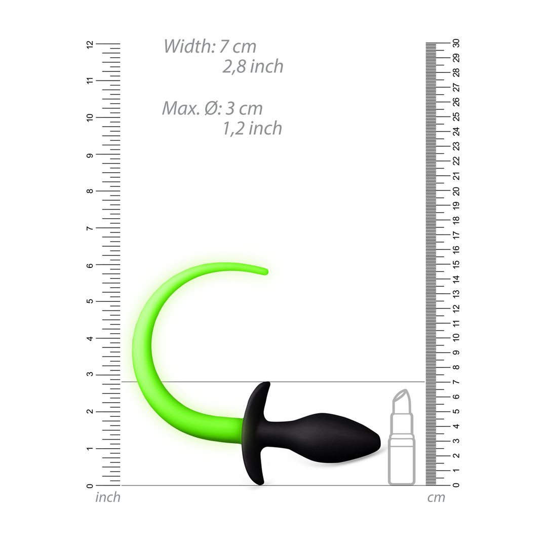Ouch! Glow in the Dark, de toekomst van bondage is hier. Het design heeft het autentiek bondage uiterlijk, maar brengt licht in het duister door zijn fluoresecrende groene details waardoor alles een feest wordt. Laat je speelse kant zien met deze puppystaart! De staart wordt anaal ingebracht. Draag dit en jouw baasje geeft je vast wat lekkers. Ouch! Glow-In-The-Dark producten moeten worden geactiveerd met het zonlicht voordat je er in het donker van kunt genieten.