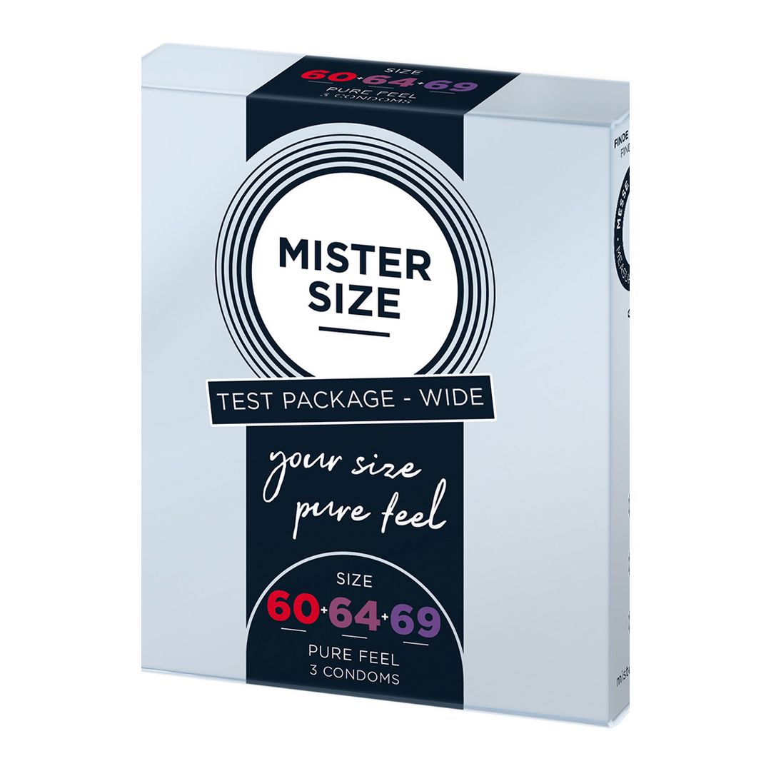MISTER SIZE – puur gevoel 60 mm, 64 mm, 69 mm (3×3 stuks testpakket), voor de nieuwsgierigen die nieuwe condoommaten willen uitproberen