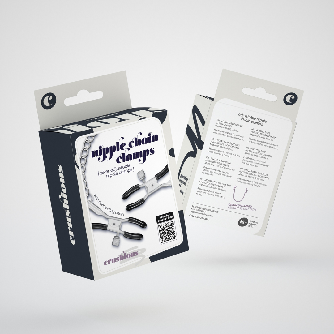 Tepelspel verhoogt je plezier zonder pijn en brengt je meest speelse kant naar boven! Belangrijkste kenmerken:- Verbindingsketting- Verstelbaar door een simpele draai aan de schroef- Met rubber beklede uiteinden voor comfort- Trek aan de ketting voor extra verkoeling- Alles gebruiksvriendelijk- Materiaal: Metaal, Rubber